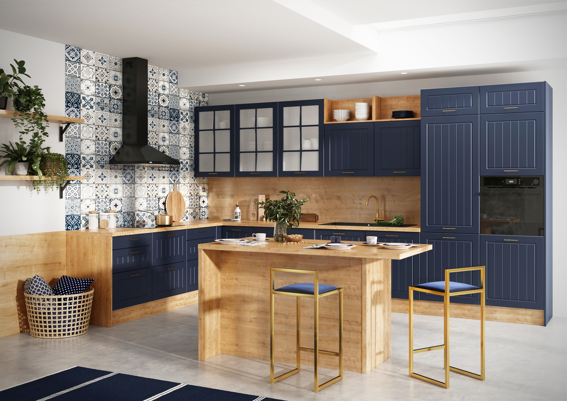 Bryła wyspy jest dominującym elementem wystroju wnętrza, nadając charakter nie tylko kuchni, ale i strefie dziennej, dlatego musi harmonijnie łączyć stylistykę zabudowy meblowej w obu strefach. Duże znaczenie ma odpowiednia kolorystyka i wybrane dekory. Wśród najbardziej popularnych znajdują się wzory drewna i kamieni, ale atrakcyjne są także odwzorowania betonu czy popularne obecnie matowe wybarwienia w monokolorze.